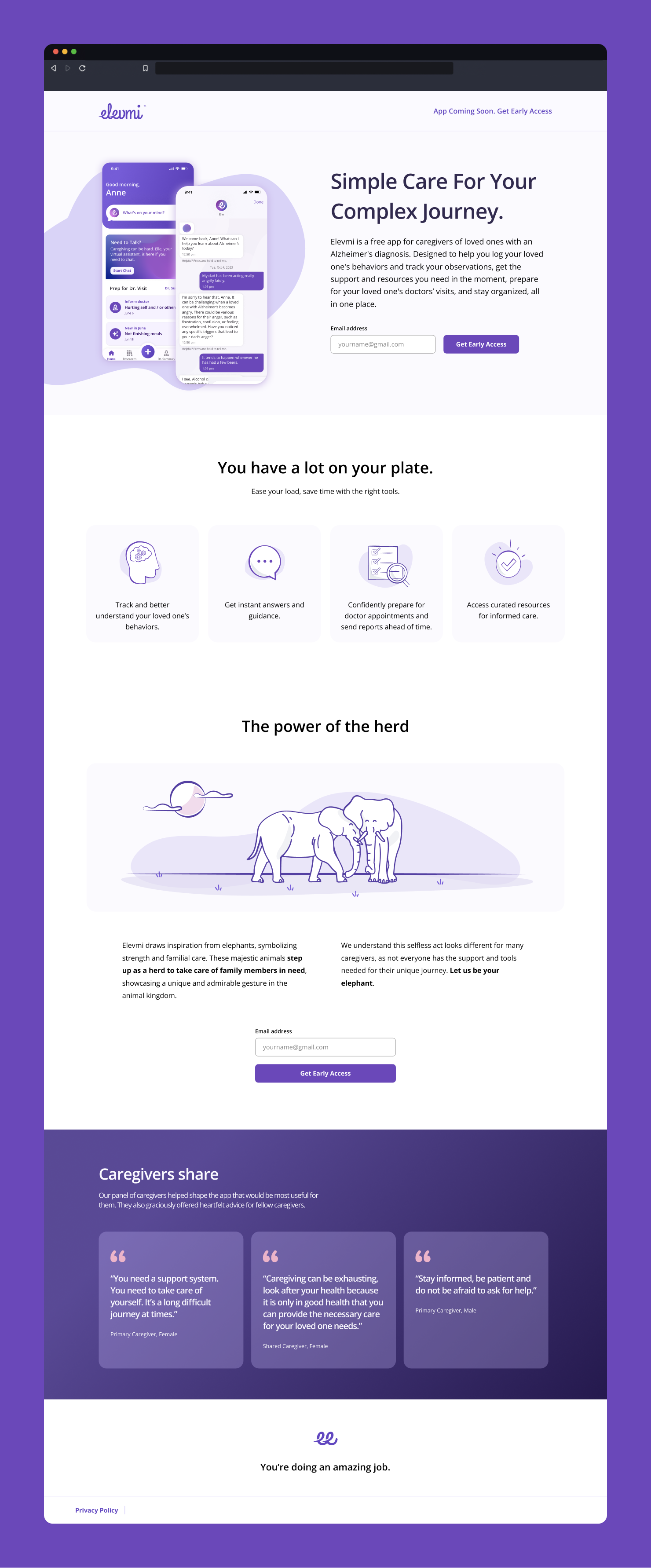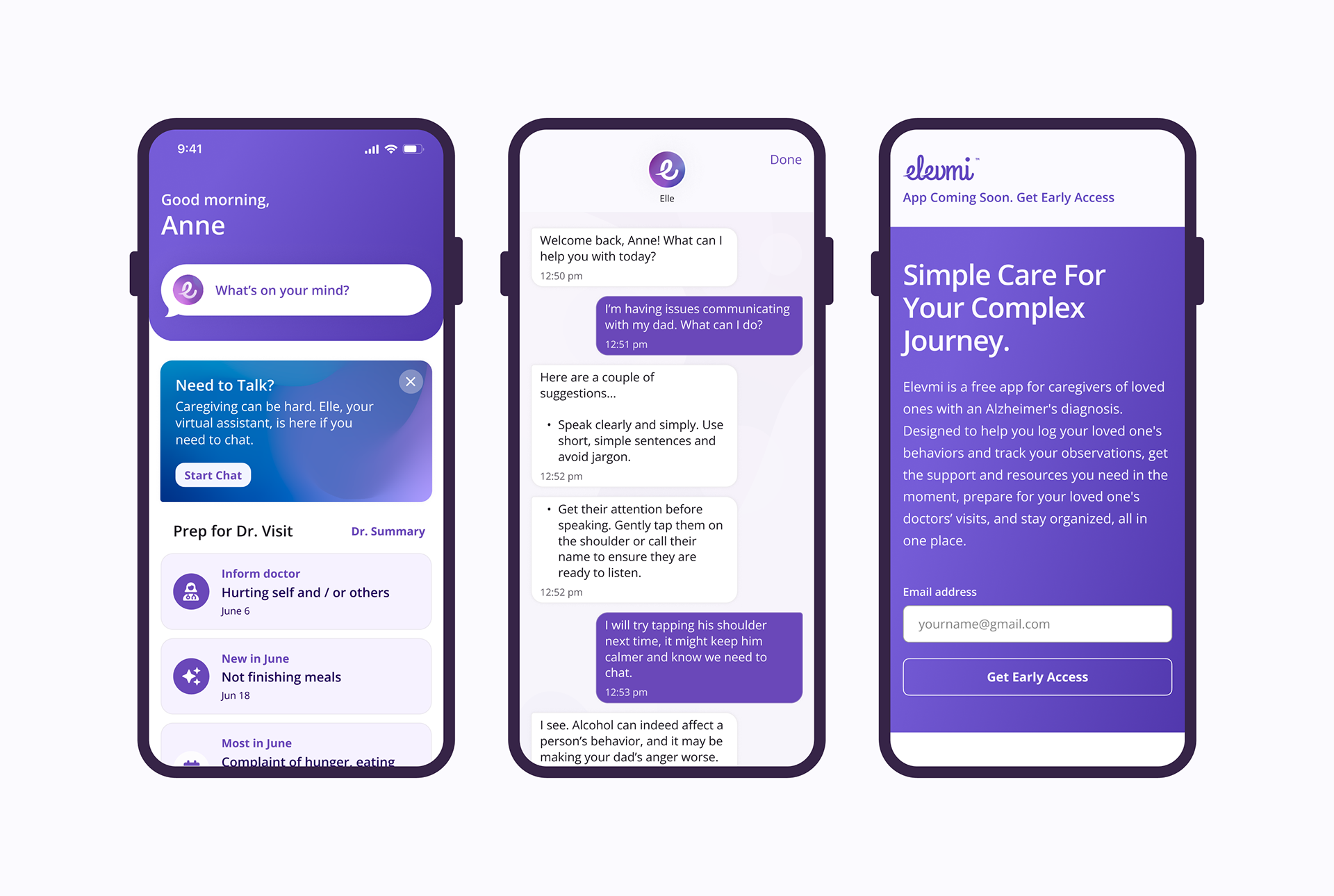 Elevmi is an AI driven companion app for caregivers of those with Alzheimer's disease.